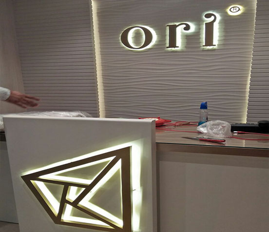 Before you choose a backlit sign letters, keep in mind that you’ll need an electrical junction behind the wall or in the ceiling above. We will provide the power supply (transformer) needed to power the low voltage LEDs. Also, adequate access will be needed in the ceiling and wall to run the wiring (Read more in FAQ) Backlighting adds a significant amount to the letter’s price and installation costs. Learn more about installation here.acklit fabricated letters can also be installed on panels, which is a great solution when accessing the wires is difficult or the wall surface isn’t ideal. This way, you only need a single electrical junction to for connection.